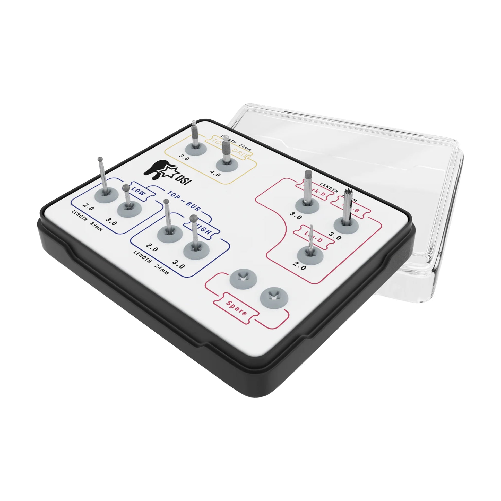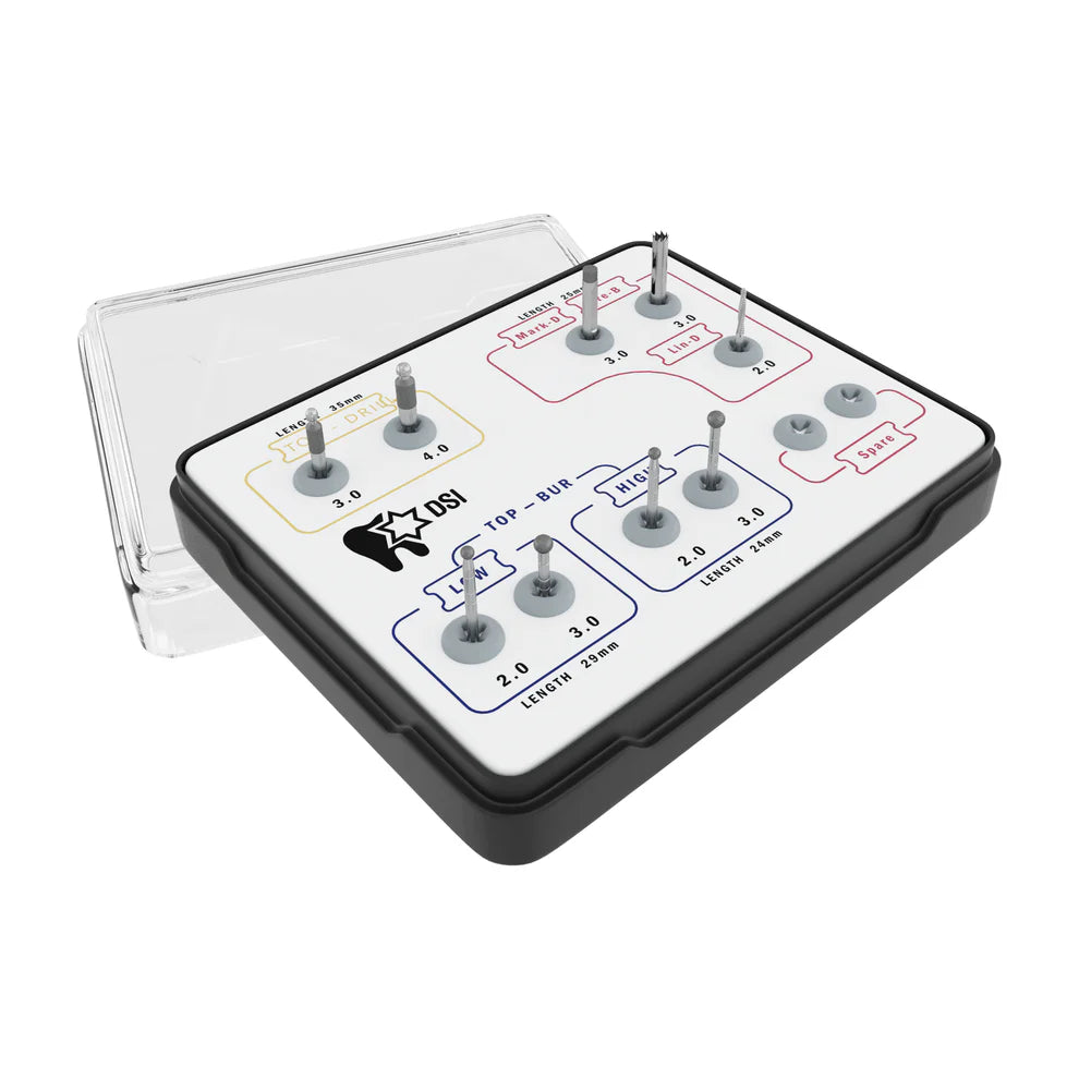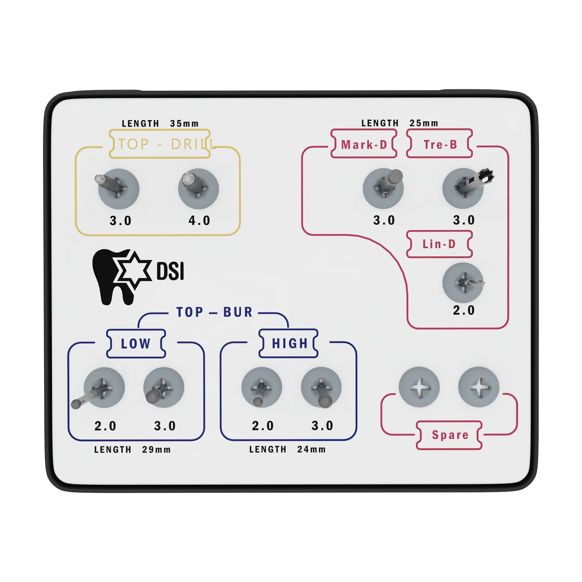 The DSI TOP Osteotomy Kit is an invaluable tool for implant surgery and placing implants correctly. To gain increased and lasting functionality, it is crucial to make use of this kit when placing implants - even in the case of a root septum being present. Specifically designed for immediate implementation, DSI TOP Osteotomy Kit offers optimal results in a wide range of scenarios. For a quick and easy implantation process, the DSI TOP Osteotomy Kit offers surgeons the necessary tools to secure sites after extraction. This kit is incredibly convenient to use for faster surgical procedures compared to other treatments available. All components within the kit are designed to simplify any issues encountered during surgery.