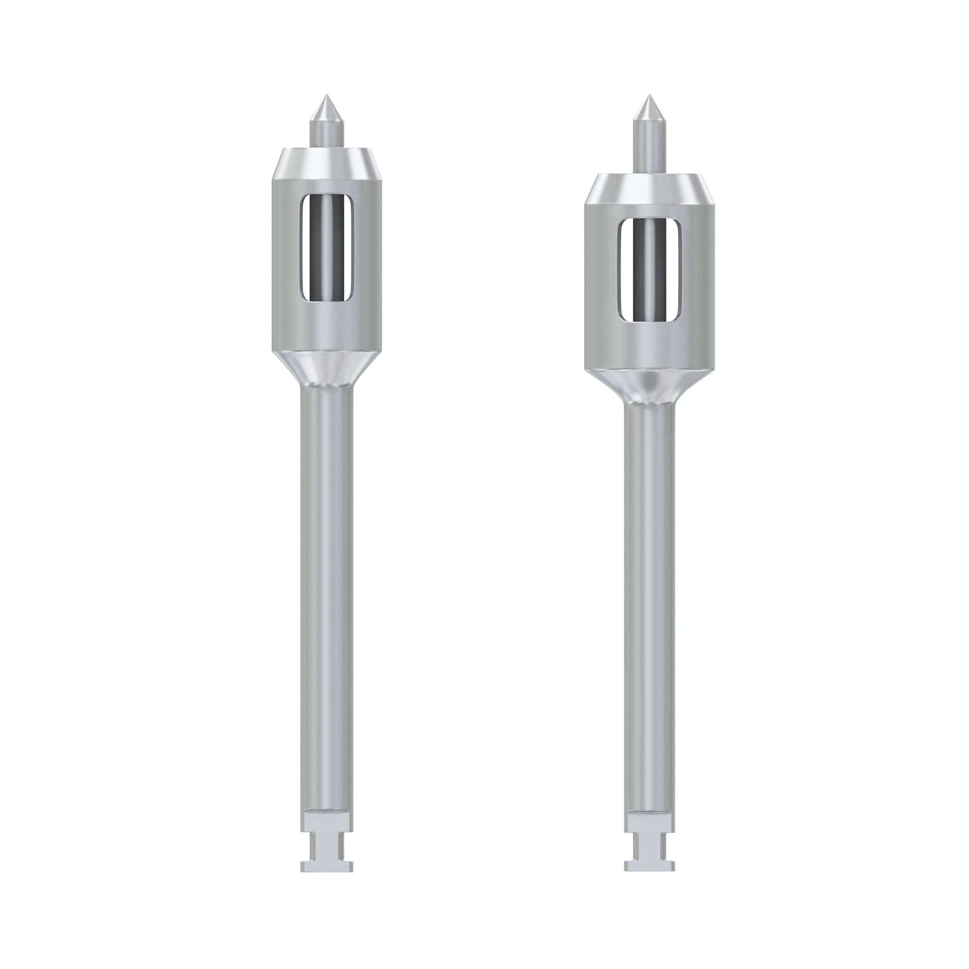 The drills prevent damage to the bone since they only slightly touch a single point. They are perforated for better air circulation and reduced heat generation. They have a latch-type (RA) connection that can be connected with any contra-angle handpiece and are made of high-quality stainless steel, autoclavable, and reusable.