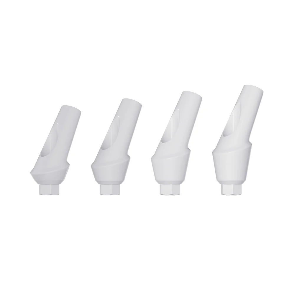DSI PEEK angulated temporary abutments have high mechanical strength, a natural tooth-color appearance, and great biocompatibility. They provide an excellent temporary aesthetic solution during the final restoration fabrication period. They are perfect for non-parallel implant alignment cases when different abutment angles are required for restoration parallelism.