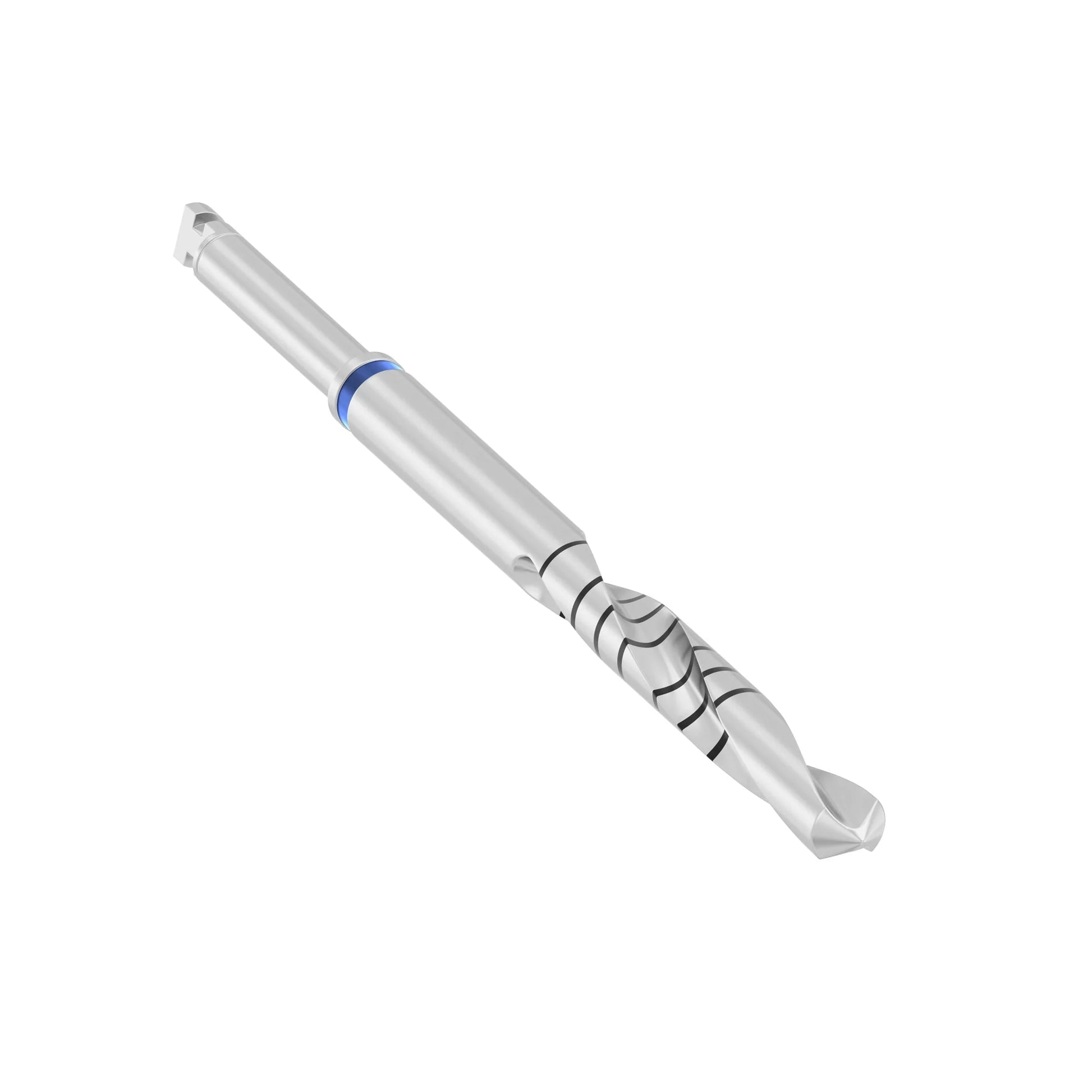 DSI cylindrical straight drill for basal/ptery implant is built with a special length of 43mm. The drill is specifically designed to go through the cortical bone and reach the pterygoid bone to install the implant in it. Basal implants are an excellent substitute for various bone augmentation procedures, sinus lifting, etc. DSI Drills are built from high-quality stainless steel. They deliver high cutting power, corrosion resistance, and reliability even after numerous uses and autoclave cycles. The drills are made with a Latch-Type RA connection and fit any contra-angle handpiece. They are made with laser osteotomy depth marks at 11, 13, 15, 18, 20, 22, and 25mm. It provides exact measurements to facilitate flawless surgical procedures with exceptional precision.