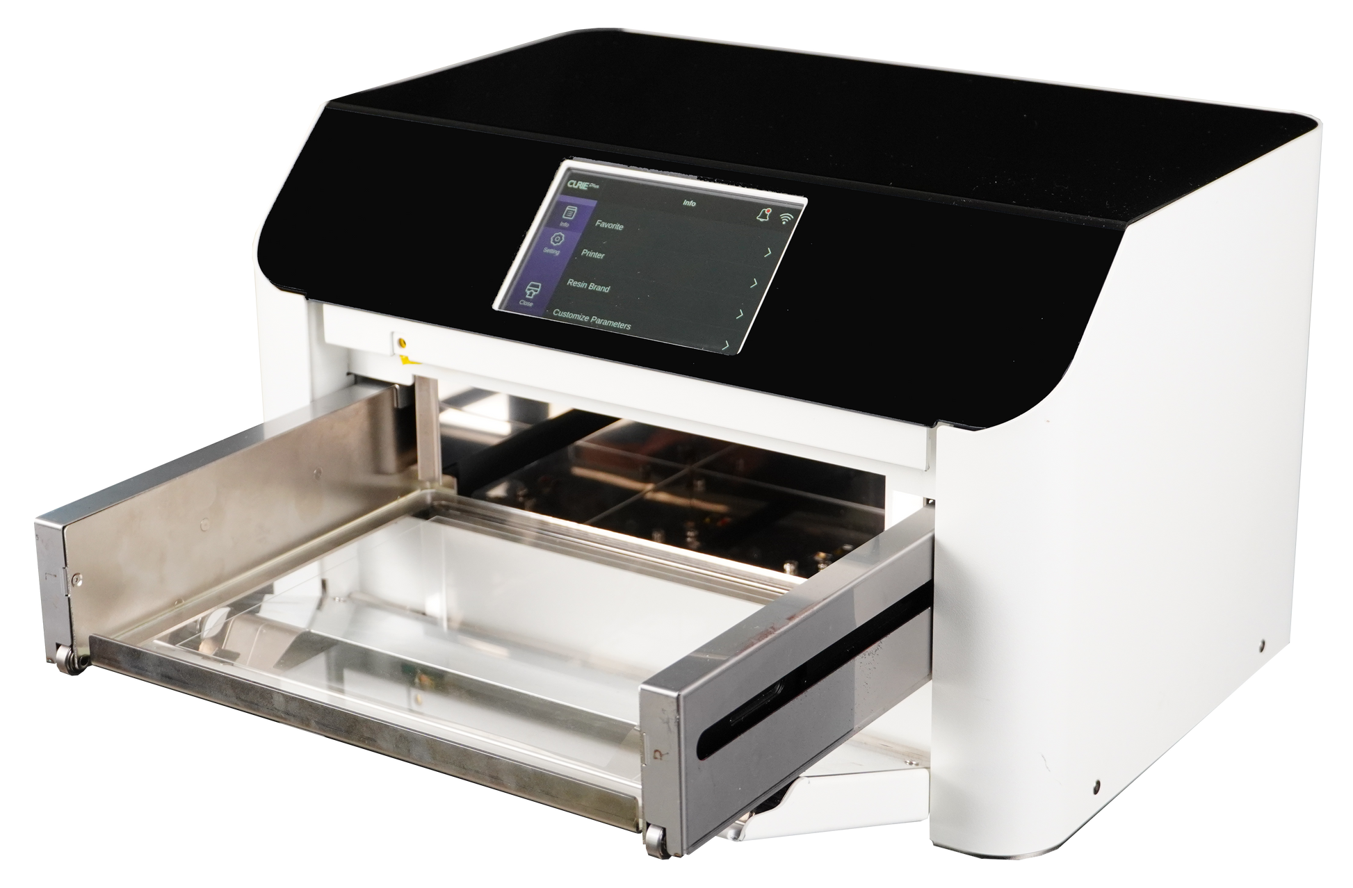 - High-performance UV curing oven: The CURIE Plus with N2 Cover has a high-performance UV curing oven, ensuring optimal performance and print quality.