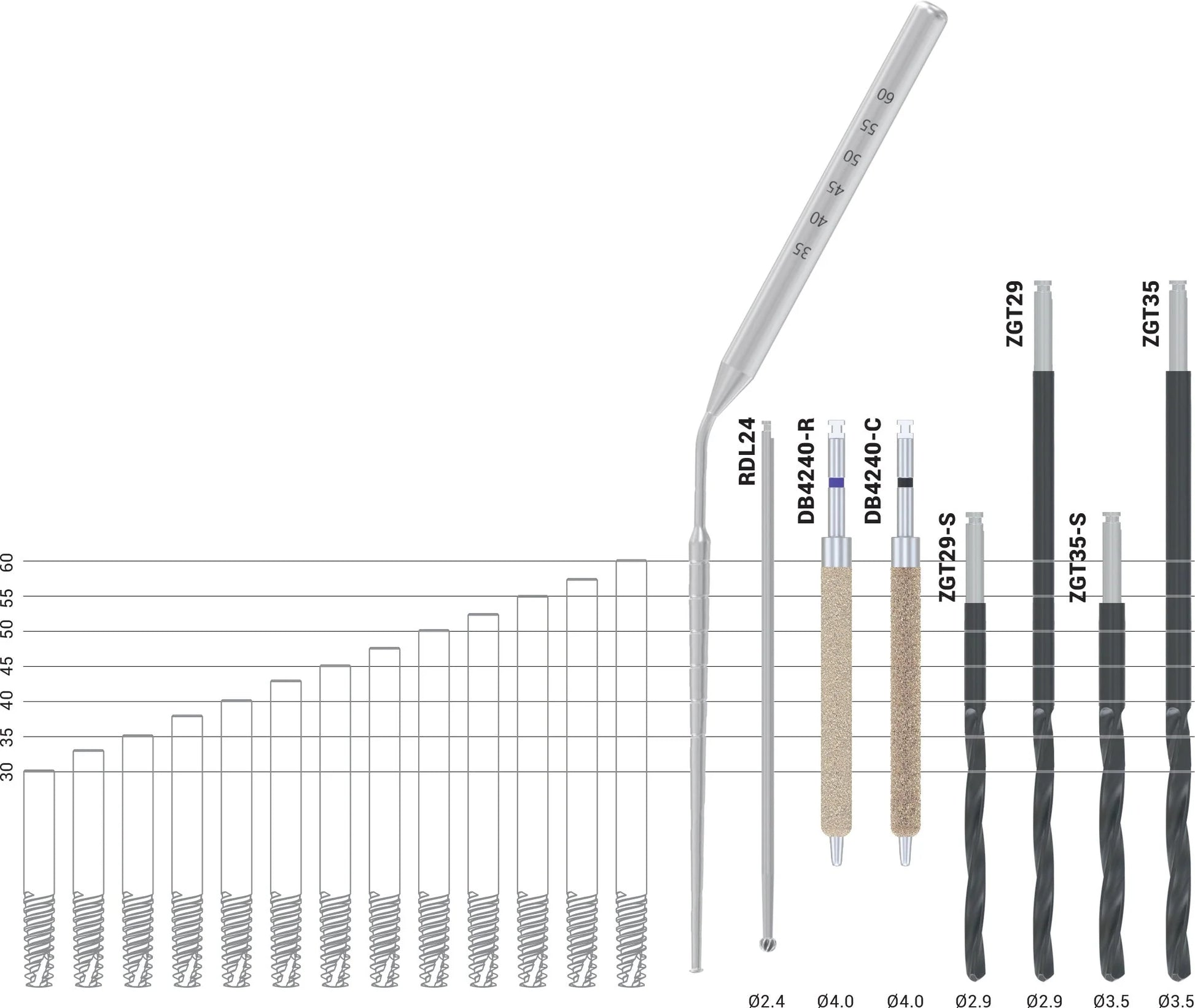 - Available in lengths from 30mm to 60mm with 2.5mm increments.