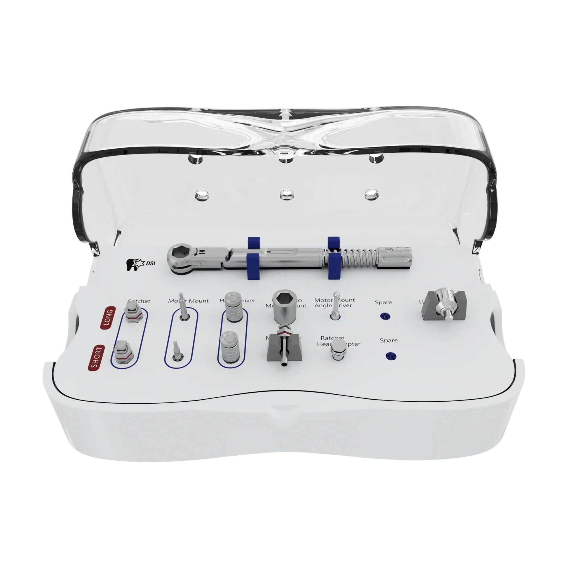 The DSI Prosthetic Kit - in dental implantation, it is relatively common that implant placement and final restoration are not performed by the same person. However, even when it is the same doctor overseeing both, there is no real need to sterilize any of the equipment used for abutment placement and crown application. This specialized tool set is ideal for installing a variety of devices and components, providing all that is needed for successful abutment attachment. Small and convenient, each part has been carefully picked to ensure maximum performance and excellent results. The kit is simple to use and provides all of the necessary components for abutment placement. This compact product covers absolutely everything you need for the successful final stages of restoration and abutment placement.