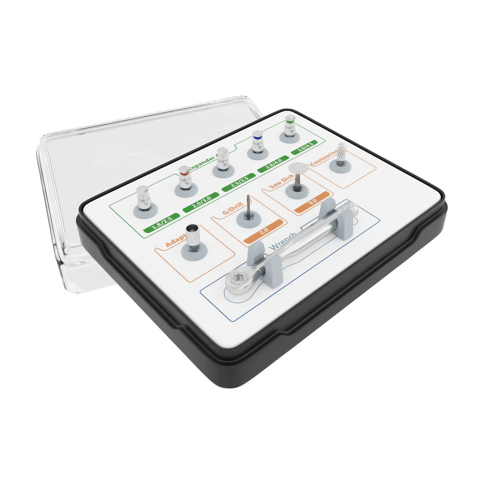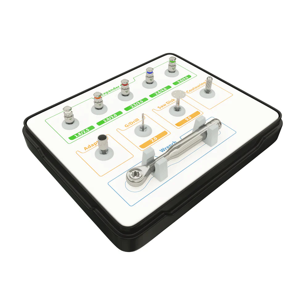This kit contains bone-spreading drills that quickly expand the ridge and drill a socket with minimal effort, making the procedure easier and quicker compared to other methods. Furthermore, it results in minimal trauma to patients and predictable outcomes.