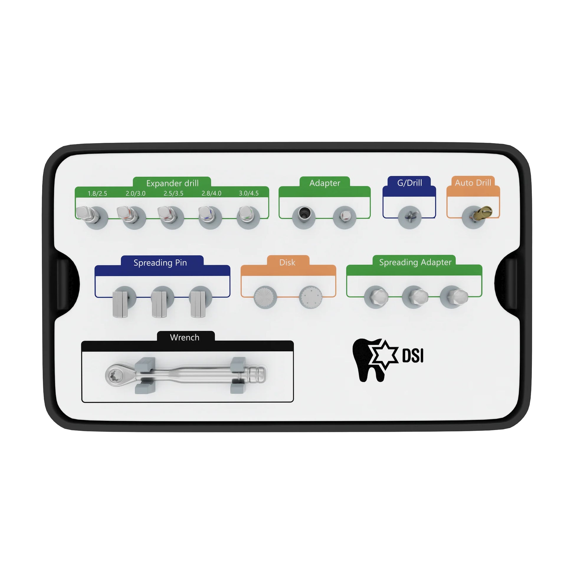 The DSI Bone Multi System Kit offers a useful solution in cases where either one implant or multiple implants need to be placed in the bone ridge. This kit features special drills designed specifically for widening bones that would typically be too narrow, enabling clinicians to insert the implants quickly and with minimal trauma. The resulting process is completed in just a few minutes and, thanks to its reliability, provides predictable outcomes. When multiple implants need to be implemented, the DSI Bone Multi System Kit stands out as the most viable option. The spreading pins ensure that the bone can expand evenly without any risk of complications during surgery. Compared to other bone spreading and expansion methods, this system is superior in terms of its efficiency, fastness, and minimal trauma for patients.