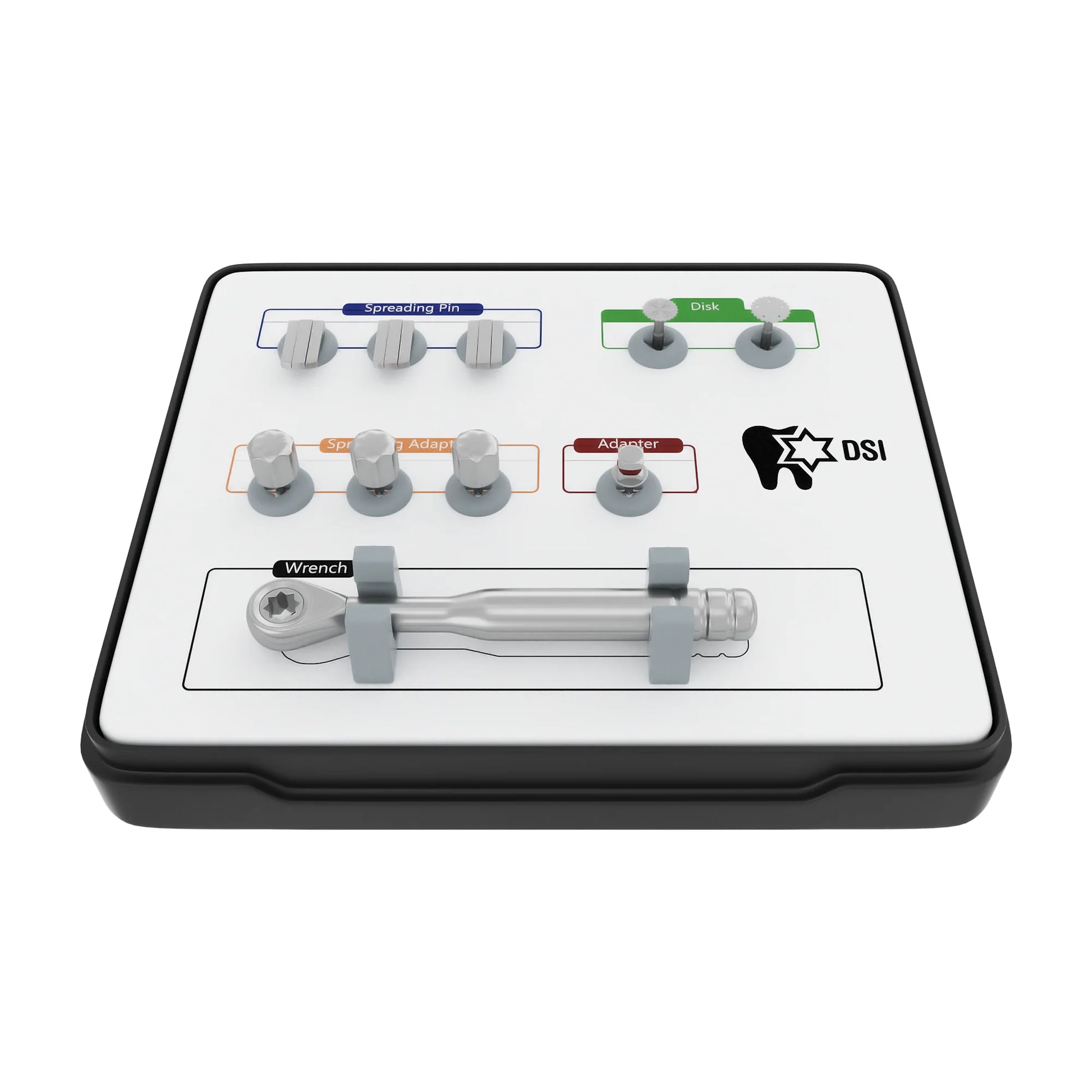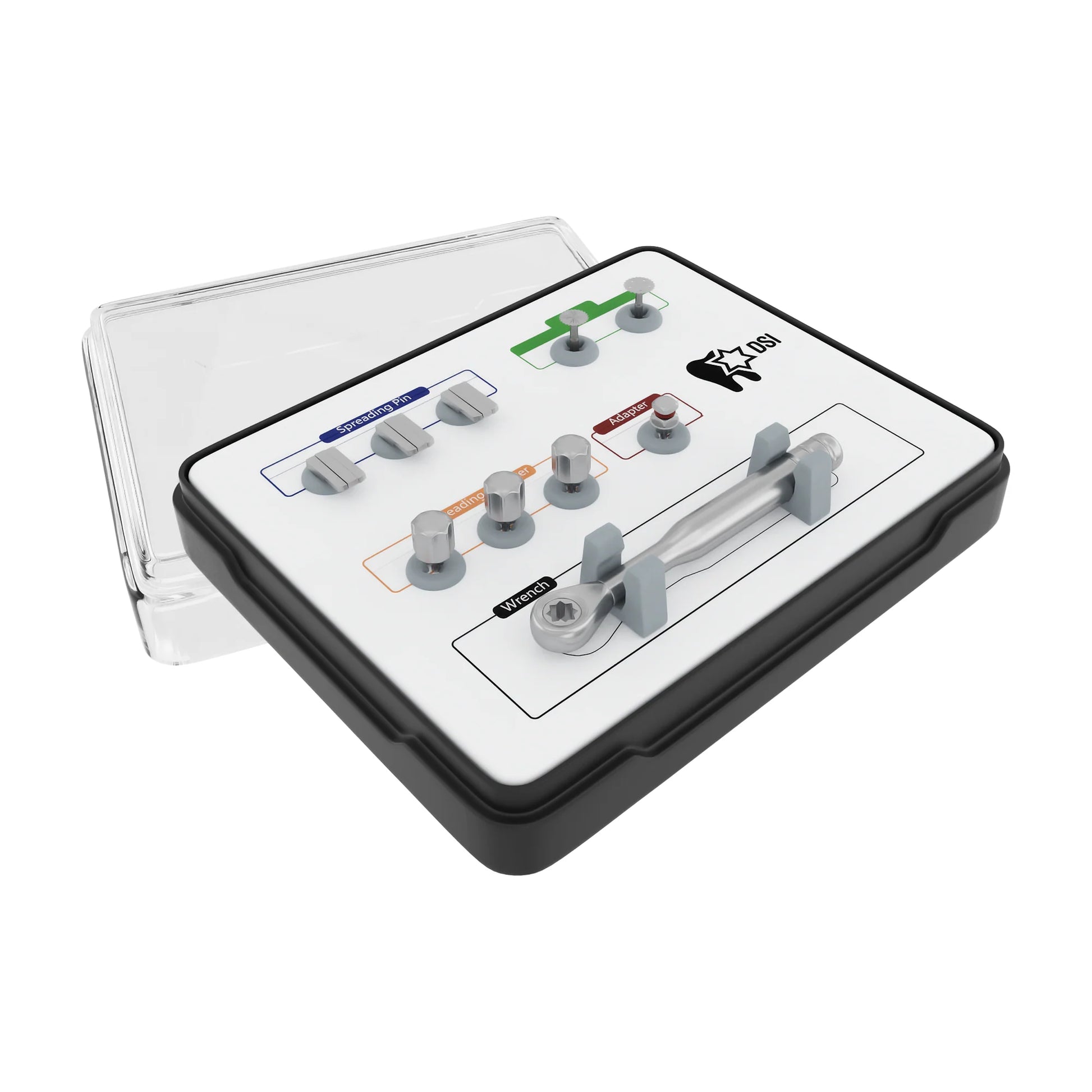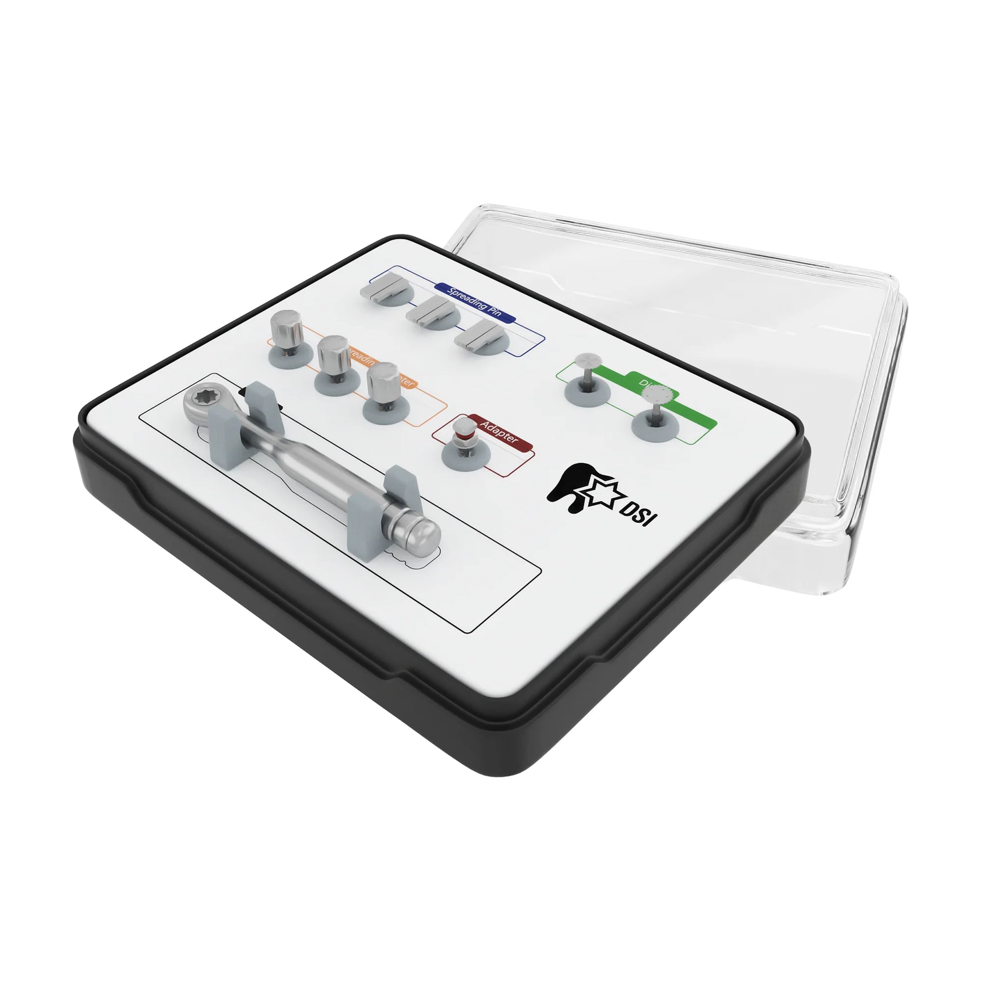 The DSI Bone Spreader Kit is designed to make the implantation of multiple implants easier. By using its specialized spreading pins, the narrow ridge of the bone can be widened in a uniform manner with no risk of complications. This allows for a number of implants to be inserted together, streamlining the procedure. When it comes to bone spreading and expansion, the DSI Bone Spreading Kit stands out from all other methods. With this kit, you will be able to perform surgery effectively and rapidly with little trauma inflicted on the patient. Without a doubt, the DSI Bone Spreading Kit is a highly reliable tool for these types of procedures.