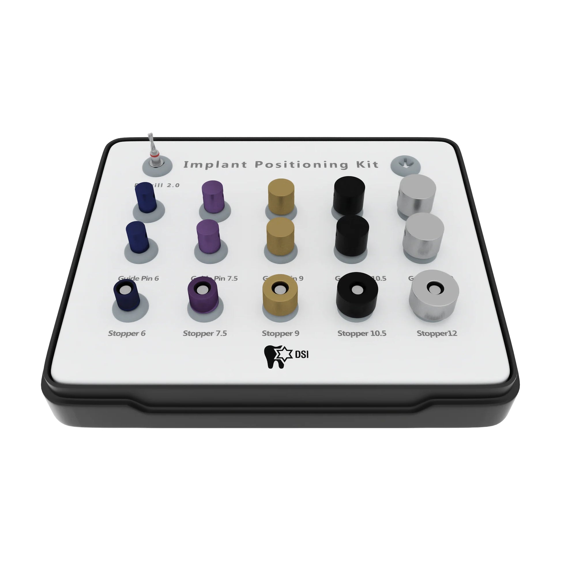 The DSI Implant Positioning kit is designed to make the placement of single or adjacent implants both fast and effortless. To install just one implant, a stopper with the desired diameter should be affixed. Centering, directing, and spacing can all be achieved quickly and precisely with this advanced tool.