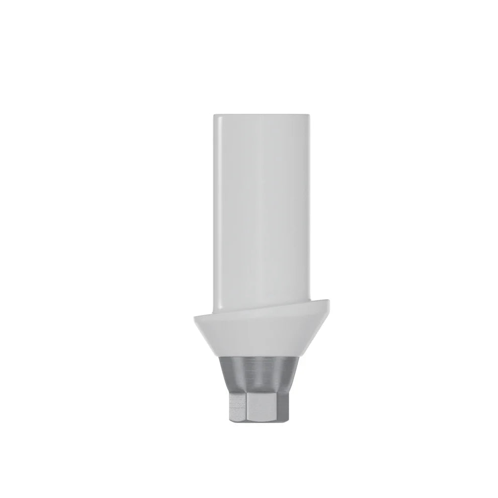 The DSI Zirconia Hybrid Abutment is an excellent alternative to metal abutments, known for its exceptional strength, durability, and unique aesthetic appeal. Its pure white color provides outstanding aesthetic results and natural tooth color in restorations, unmatched by metal abutments. Constructed as a monoblock zirconium body on a titanium base, this abutment offers high resistance to intra-oral acids, ensuring long-lasting restorations and peace of mind for patients. Unlike metal abutments, zirconia abutments maintain their original pure white intensity throughout the restoration's lifespan without fading or dimming.